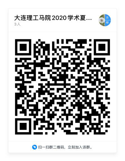 受新冠肺炎疫情影响,本次学术夏令营活动采用线上形式开展,相关考核采用网络远程面试的方式进行。学术夏令营资格初审通过考生需加入钉钉群(群二维码:详见下图,加群时请备注本人申请专业+真实姓名),相关活动、考核安排将通过钉钉群通知各位同学。