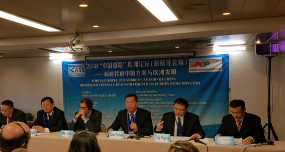 10月8日,“2018中国道路欧洲论坛(葡萄牙会场)”在里斯本召开。此次论坛由中国社会科学院马克思主义研究院、葡萄牙共产党中央委员会共同主办,山东社会科学院协办。本届论坛的主题为“新时代的中国方案与欧洲发展”。中国社科院马克思主义研究院党委书记、院长邓纯东,葡萄牙共产党中央书记处成员、国际部部长佩德罗•盖莱罗致辞并总结,葡萄牙共产党中央总书记热罗尼莫•德索萨,葡萄牙共产党中央政治委员会委员安赫洛•艾维斯以及来自中国社会科学院、教育部高等学校社会科学发展研究中心、中国人民大学、北京师范大学、中国政法大学、山东社会科学院、华东政法大学、东北师范大学、内蒙古财经大学、必赢国际437官网、江苏师范大学、广西大学等全国23所高校和科研院所的学者专家参加会议。必赢官网周福战、陈晓晖、刘志礼、葛丽君、朱琳琳五位教师代表学校参加会议并作大会主题发言。
