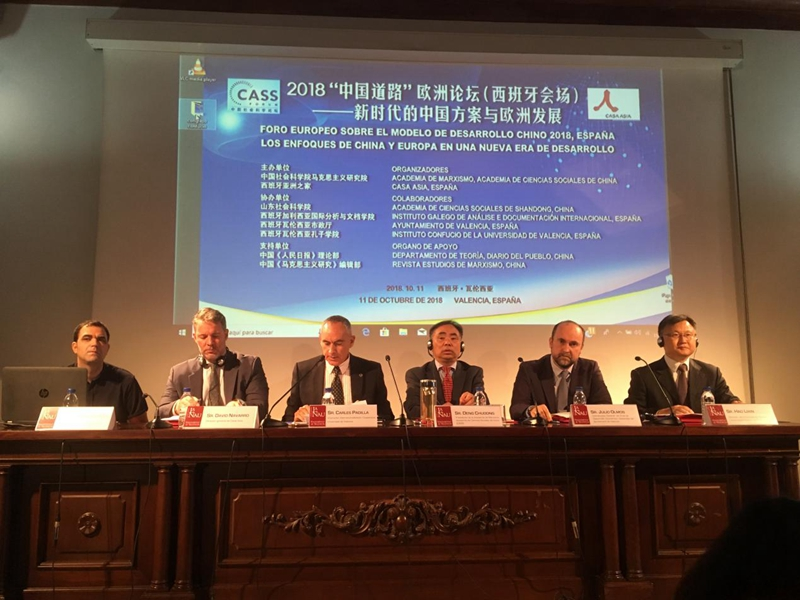 10月11日,“2018中国道路欧洲论坛(西班牙会场)”在瓦伦西亚召开。此次论坛由中国社会科学院马克思主义研究院、西班牙"亚洲之家"共同主办,山东社会科学院、西班牙加利西亚国际分析与文档学院、西班牙瓦伦西亚市政厅、西班牙瓦伦西亚大学孔子学院协办。本届论坛的主题为“新时代的中国方案与欧洲发展”,来自中国社会科学院、必赢国际437官网、中国人民大学、中央党史和文献研究院、山东社会科学院、山东师范大学、江苏师范大学等的专家学者进行了专题发言,重点研讨了欧盟面临的政治经济挑战和中国改革开放、中欧合作的新焦点、中国与欧洲视野下的全球挑战、“一带一路”与中欧合作的桥梁等议题。必赢官网周福战、陈晓晖、刘志礼、葛丽君、朱琳琳五位教师代表学校参加会议并作大会主题发言。