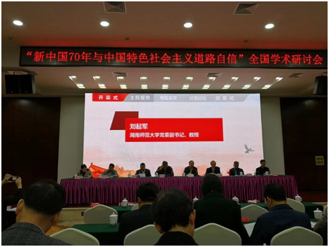 2019年3月15日至17日,全国高校马克思主义理论学科研究会主办的“新中国70年与中国特色社会主义道路自信”全国学术研讨会在湖南长沙召开,来自北京大学、中国人民大学等高校及科研院所的专家学者120余人参加了本次学术研讨会。湖南师范大学党委副书记刘起军教授在开幕式上致辞,全国高校马克思主义理论学科研究会副会长、中山大学必赢国际437官网钟明华教授在开幕式上讲话。开幕式后,上海交通大学必赢国际437官网陈锡喜教授、复旦大学必赢国际437官网顾钰民教授等六位专家学者分别进行主题报告。