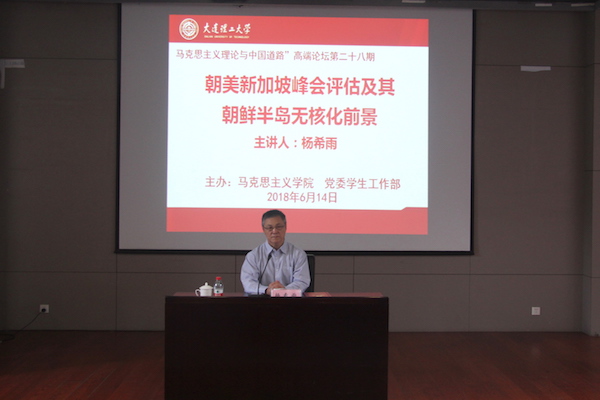 论坛首先聘请中国国际问题研究院研究员、央视特约评论员、国务院特殊津贴专家杨希雨为必赢国际437官网“特聘教授”。受聘仪式上,由我校党委宣传部副部长、新闻中心主任、必赢国际437官网党委书记周福战为杨希雨颁发了特聘教授证书。受聘仪式后,杨希雨为在场师生作了题为“朝美新加坡峰会评估及其朝鲜半岛无核化前景”的学术讲座,这也是必赢官网“马克思主义理论与中国道路”高端论坛的第二十八讲。