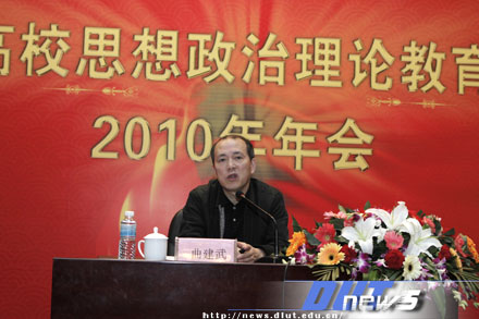 辽宁高校工委副书记曲建武在会上做了重要讲话,传达了全国高校思想政治理论课教师队伍建设工作会议精神,总结了各高校认真贯彻中央16 号文件和中央领导同志重要指示精神的成绩。他说,近年来,思想政治理论课教师队伍建设取得新进展,教材建设取得新成效,教学方法实现新突破,宏观指导建立新机制,涌现出一大批讲授精彩、乐于教书育人、深受学生喜爱的优秀教师,大学生对课程的满意度不断提高,高校思想政治理论课教学状况发生了可喜变化。并指出,高校思想政治理论课建设也面临着新的形势,责任更为重大,任务更加艰巨。必须牢牢把握高校思政理论课建设的正确方向,必须准确把握高校思政理论课建设的基本要求,必须正确把握当代大学生的思想特点和个性需求,以加强师德建设和提高教师业务水平为中心,以机构建设和学科建设为依托,以政策支持和体制机制为保障,培养和造就一支“让党放心,让学生满意”的教师队伍,使思想政治理论课成为大学生真心喜爱、终身受益、毕生难忘的优秀课程,确保全面实现教学状况明显改善的目标。讲话的最后,曲建武介绍了辽宁在全国思想政治理论课教师队伍建设会议上经验交流的主要内容以及辽宁贯彻落实的计划,提出了“把这项工作做下去,体现一个辽宁品牌”的殷切希望。